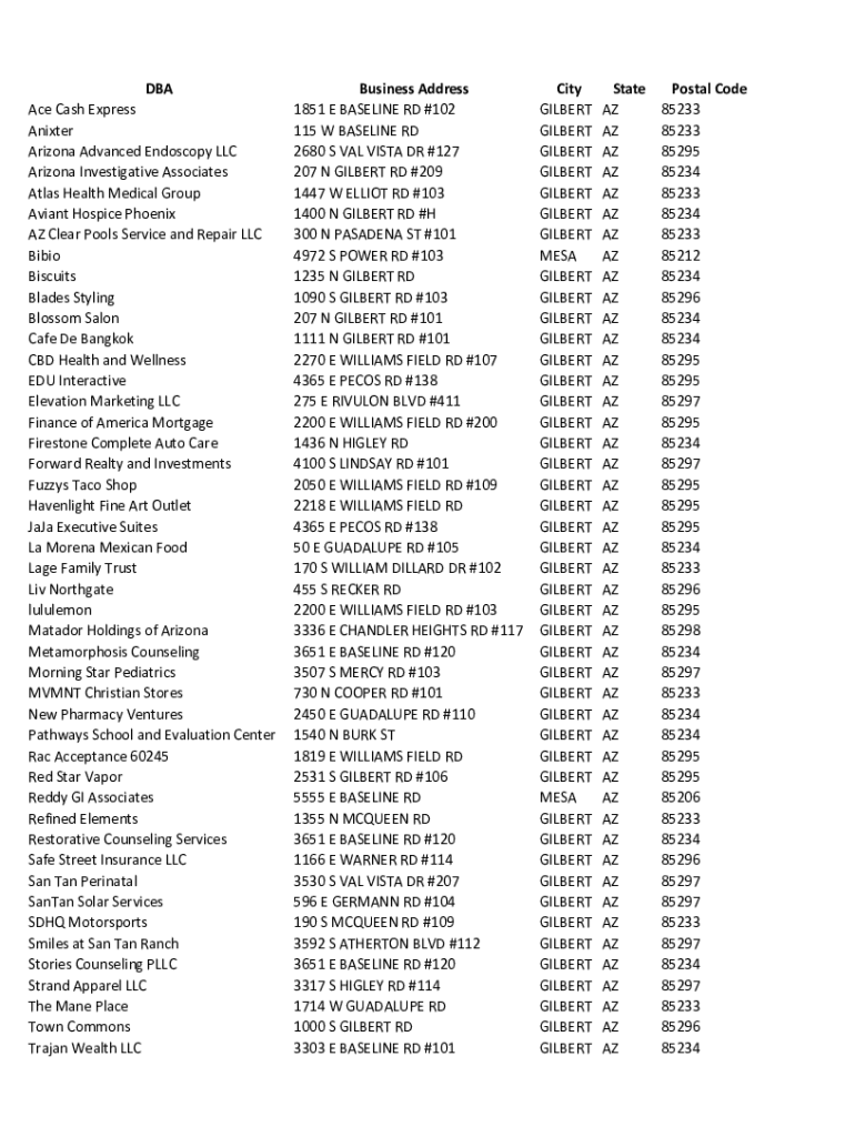 DBA Ace Cash Express Canister Arizona Advanced Endoscopy LLC Arizona Investigative Associates Atlas Health Medical Group Avian Hospice Phoenix AZ Clear Pools Service and Repair LLC Bi bio Biscuits