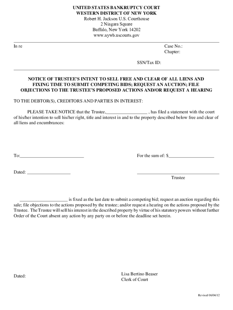 UNITED STATES BANKRUPTCY COURT WESTERN DISTRICT OF NEW YORK Robert H. Jackson U.S. Courthouse 2 Niagara Square Buffalo, New York 14202 www.nywb.uscourts.gov ___ In re Case No.: Chapter: SSN×Tax ID: