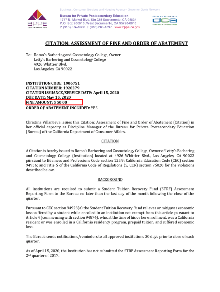 Get the free Bureau for Private Postsecondary Education -Letty's Barbering and Cosmetology Colleg...