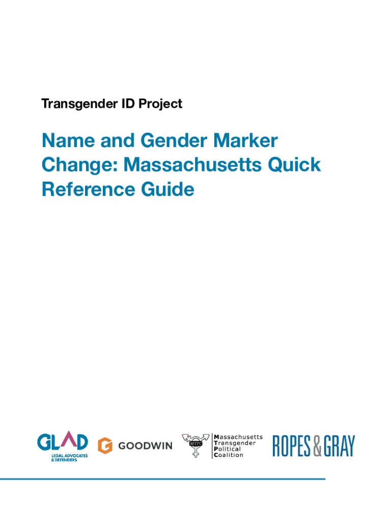 Transgender ID Projectile and Gender Marker Change: Massachusetts Quick Reference Guidebook THE TRANSGENDER ID PROJECT The Transgender ID Project is a resource for transgender people living in New