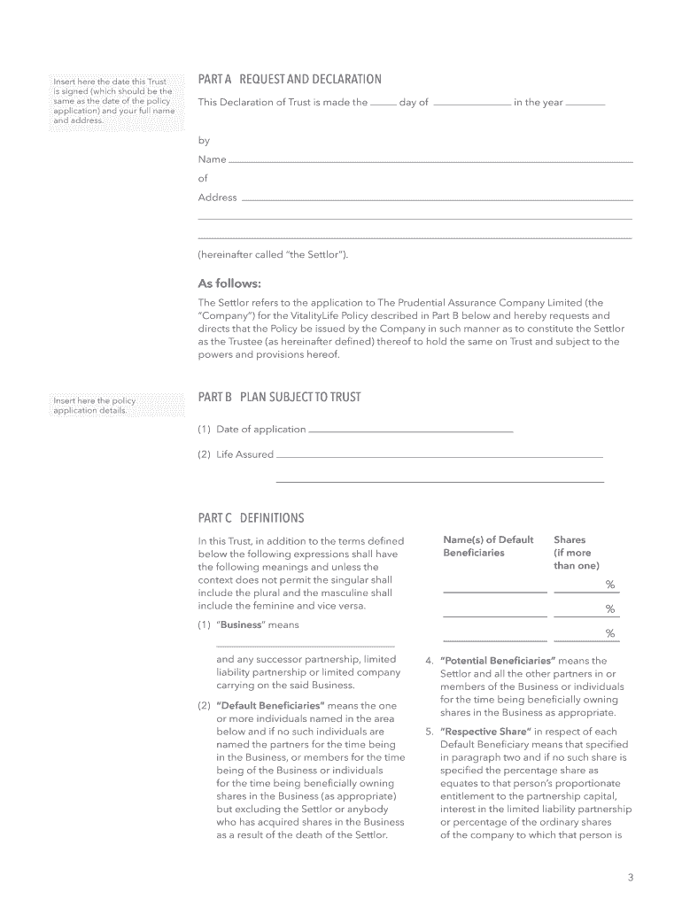 The VitalityLife Business Trust For use with a VitalityLife Business Protection Plan At VitalityLife we try to avoid complex language and unnecessary jargon wherever possible. However, because this