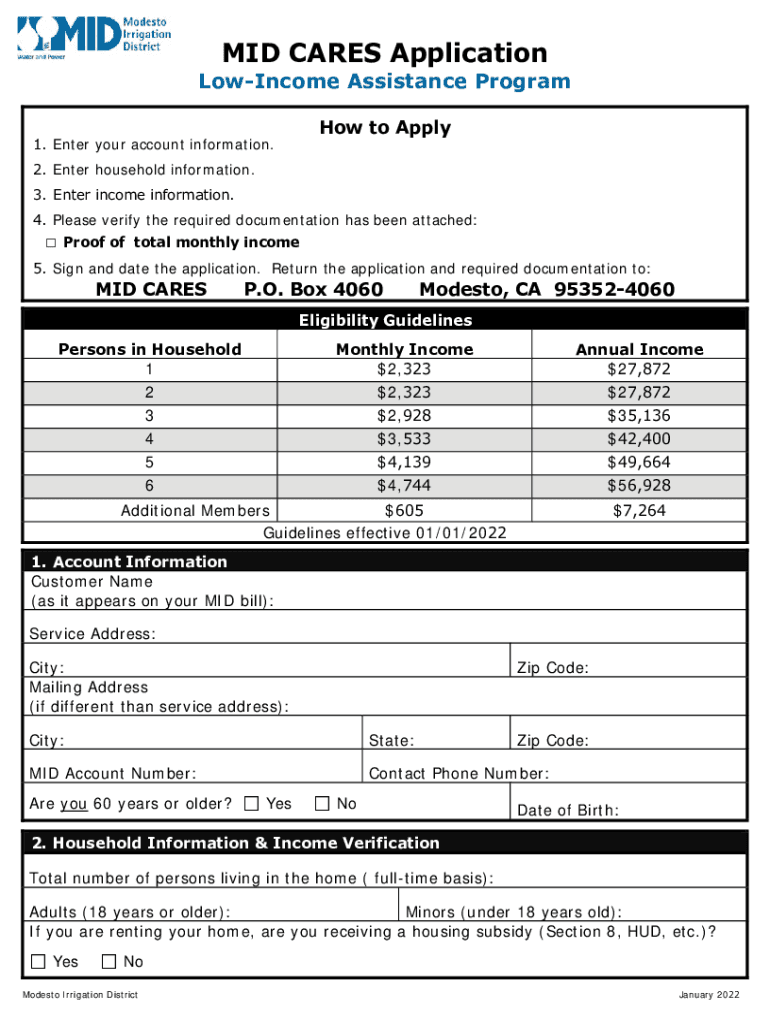MID CARES Application Income Assistance Program How to Apply1. Enter your account information. 2. Enter household information. 3. Enter income information.4. Please verify the required documentation