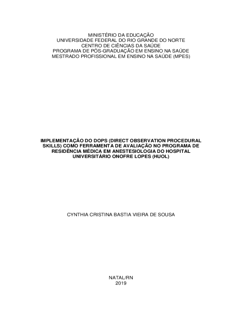 MINISTRY DA EDUC AO UNIVERSIDADE FEDERAL DO RIO GRANDE DO NORTE CENTR ODE CINEMAS DA SADE PROGRAM DE GRADUAL EM ENSI NO NA SADE ESTRADA PROFESSIONAL EM ENSI NO NA SADE (APES×IMPLEMENT AO DO DOES