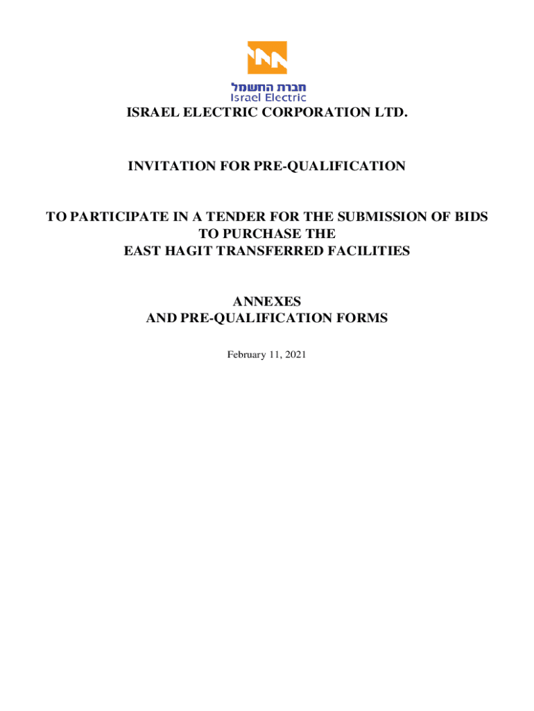 ISRAEL ELECTRIC CORPORATION LTD.INVITATION FOR PREQUALIFICATION PARTICIPATE IN A TENDER FOR THE SUBMISSION OF BIDS TO PURCHASE THE EAST HABIT TRANSFERRED FACILITIESANNEXES AND PREQUALIFICATION FORMS