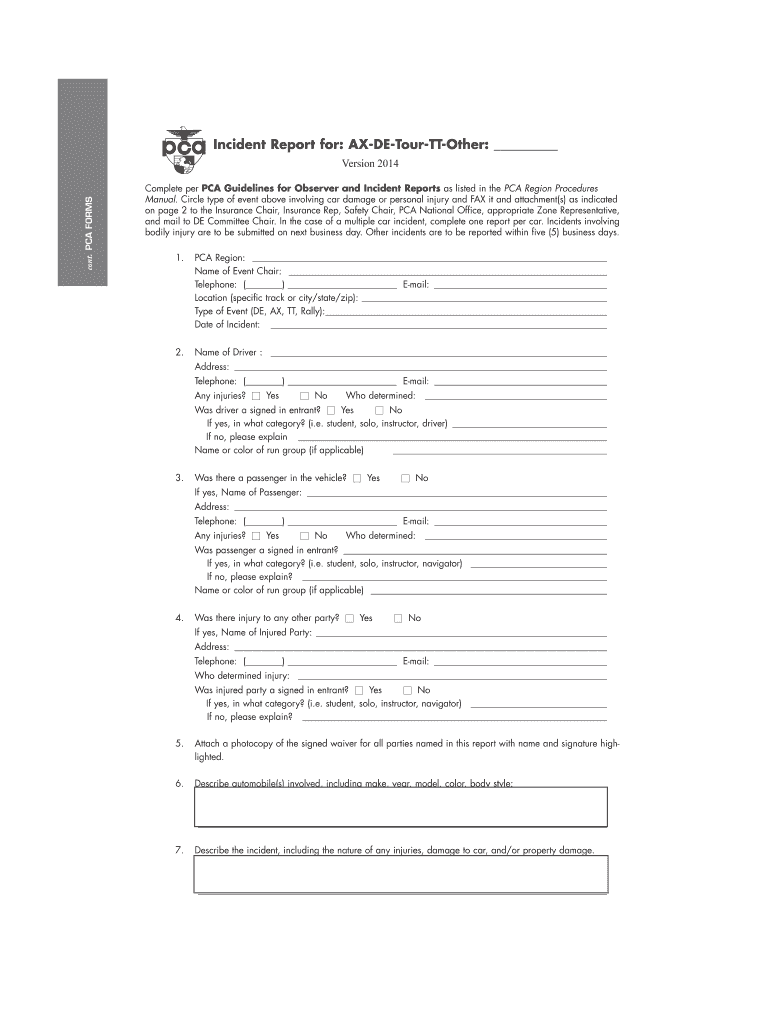 2010 rpm book 12/29/09 11:55 PM Page 166 Incident Report for: AX-DE-Tour-TT-Other: cont. PCA FORMS Version 2014 Complete per PCA Guidelines for Observer and Incident Reports as listed in the PCA Region