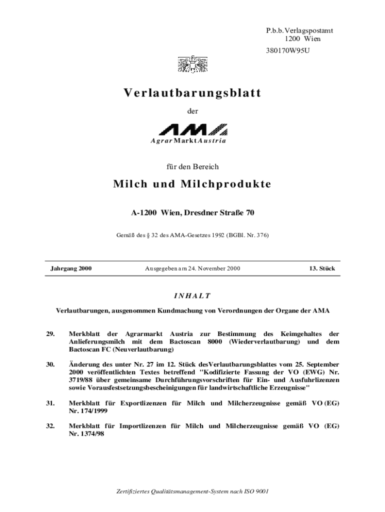 P.b.b. Verlagspostamt 1200 Wain 380170W95UV her la tuba rungs b last era g r an r Market A u s t r i Afr den BereichMilch UND Milchprodukte A1200 Wain, Dresden Straw 70 Gem DES 32 DES AMAGesetzes