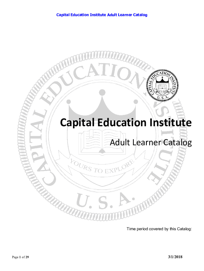 Capital Education Institute Adult Learner CatalogCapital Education Institute Adult Learner Catalogize period covered by this Catalog:Page 1 of 293×1/2018Capital Education Institute Adult Learner