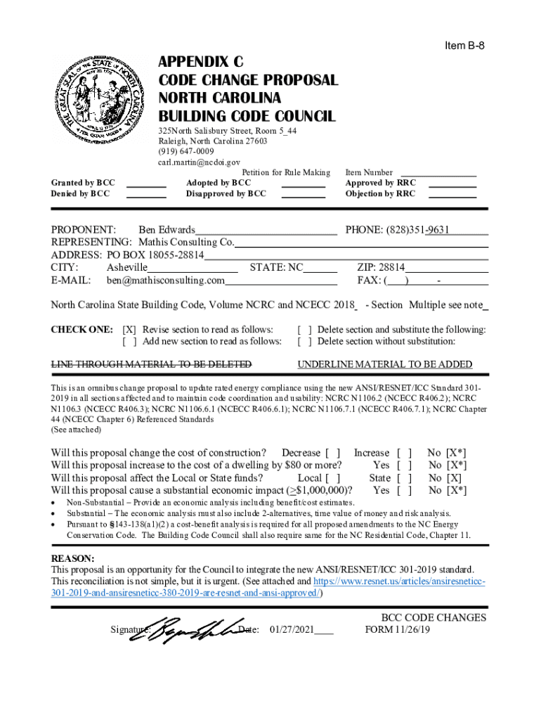 Get the free Item B-9 APPENDIX C CODE CHANGE PROPOSAL NORTH CAROLINA ...