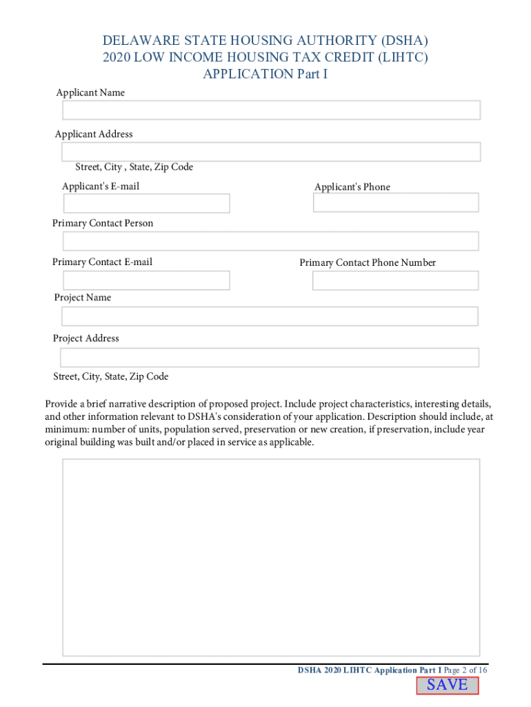 DELAWARE STATE HOUSING AUTHORITY (DSA) 2020 LOW INCOME HOUSING TAX CREDIT (LIH TC) APPLICATION Part I Please complete the entire Part I, all fields marked in red are required. Prior to completing