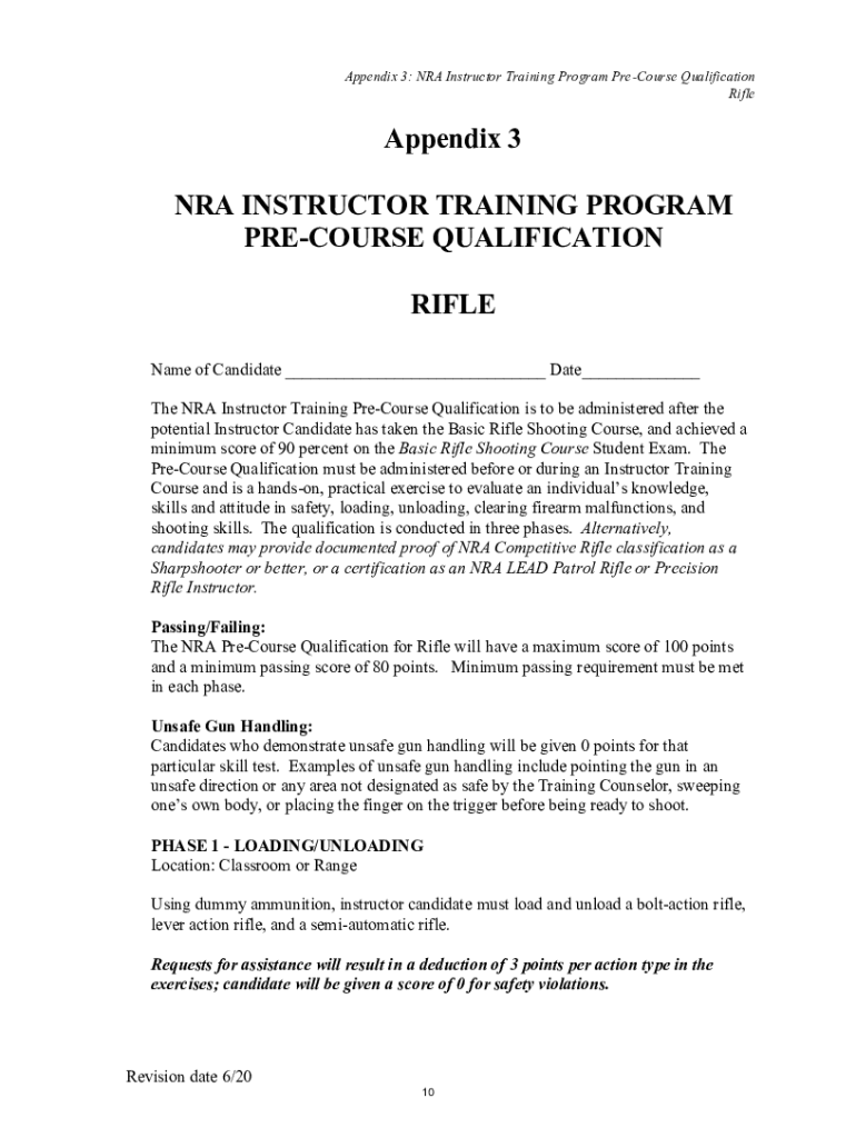 Get the free Appendix 3 NRA INSTRUCTOR TRAINING PROGRAM PRE-COURSE ...