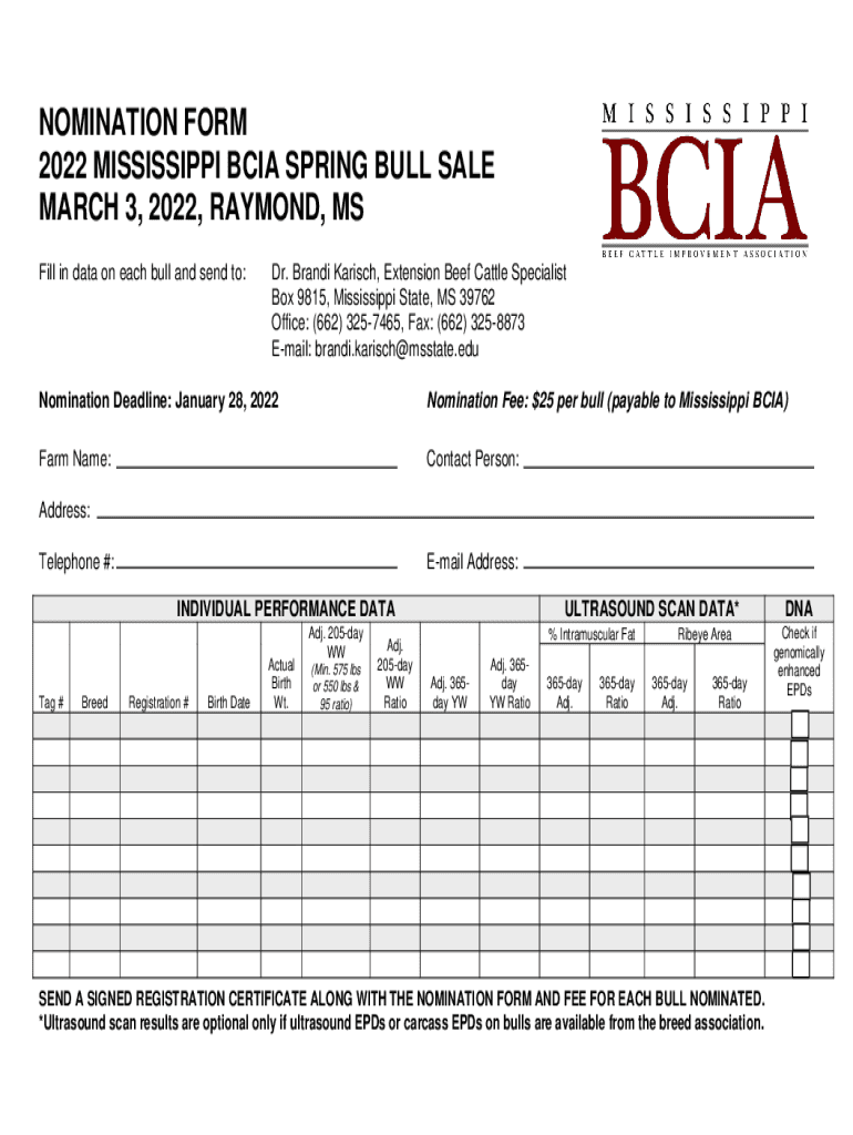 Get the free NOMINATION FORM 2022 MISSISSIPPI BCIA SPRING BULL SALE ...