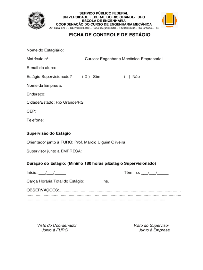 SERGIO PBL ICO FEDERAL UNIVERSIDADE FEDERAL DO RIO GRANDEUR ES COLA DE ENGELHARDT COORDINATE DO CURS ODE ENGELHARDT MONICA Av. Ilia, km 8 CEP 96201900 One: (53×2336648 Fax:2336652 Rio Grande RICH