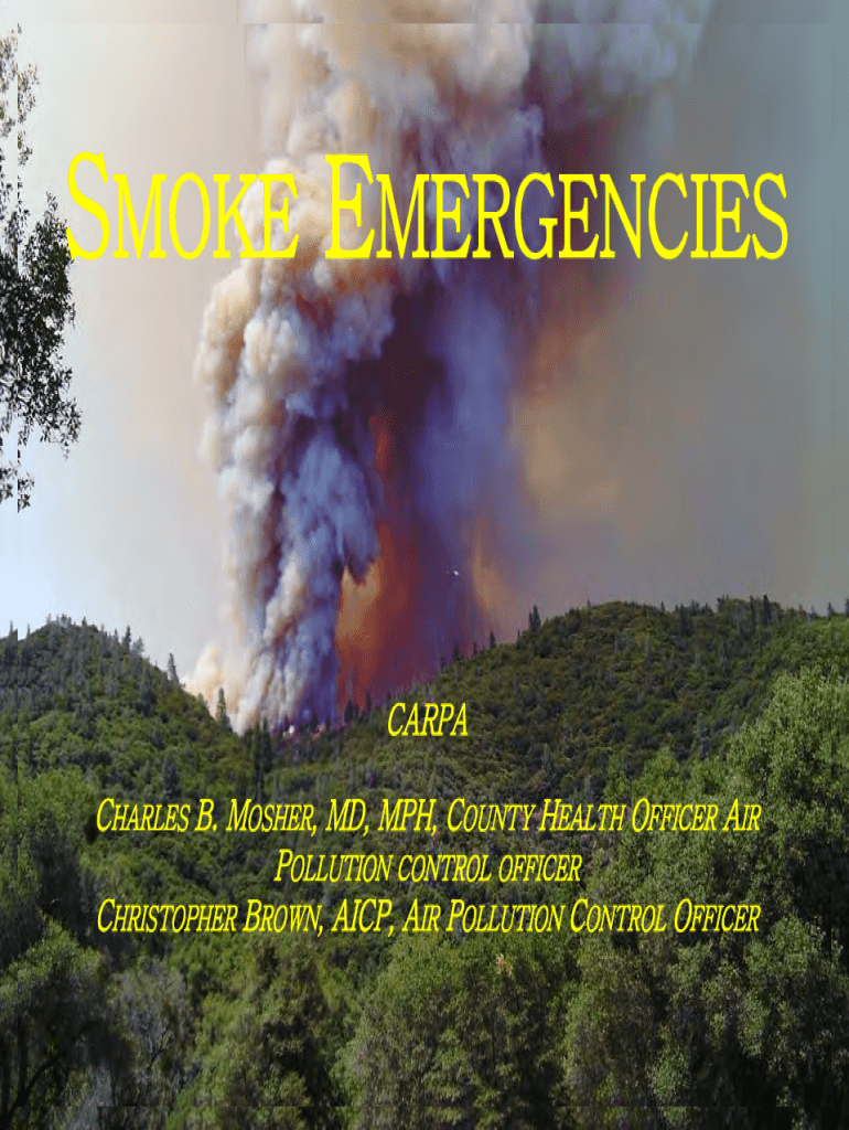 SMOKE EMERGENCIES CARPA CHARLES B. MOTHER, MD, MPH, COUNTY HEALTH OFFICER AIR POLLUTION CONTROL OFFICER CHRISTOPHER BROWN, ICP, AIR POLLUTION CONTROL OFFICERDefine Roles: o Health Officers o Air Pollution