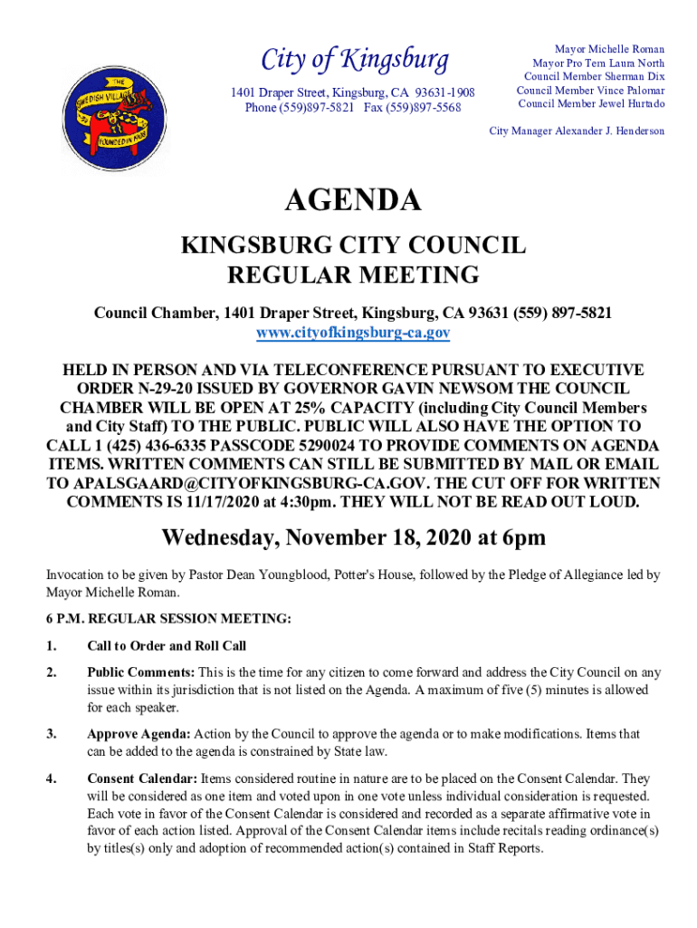 Get the free Online AGENDA - cityofkingsburg-ca.gov Fax Email ...
