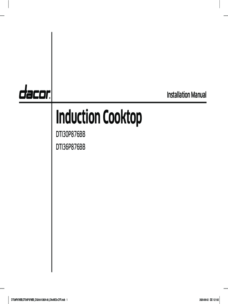 Installation ManualInduction Cook top DTI30P876BB DTI36P876BBDTI36P876BB,DTI30P876BB×DG6801292A00×EN+MES+CFR. Indy 120200602 1:21:02Contents / Customer service informationContents / Customer service