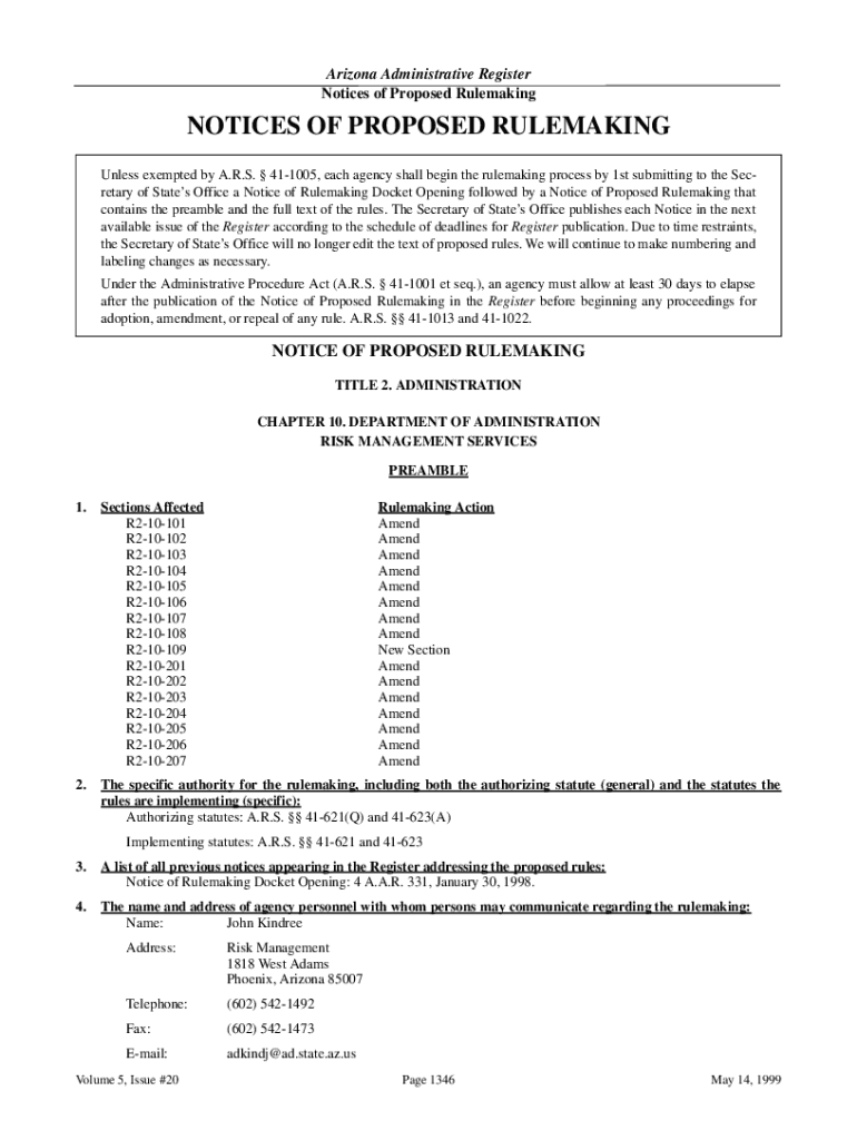 Arizona Administrative Register Notices of Proposed RulemakingNOTICES OF PROPOSED REMAKING Unless exempted by A.R.S. 411005, each agency shall begin the rule making process by 1st submitting to the