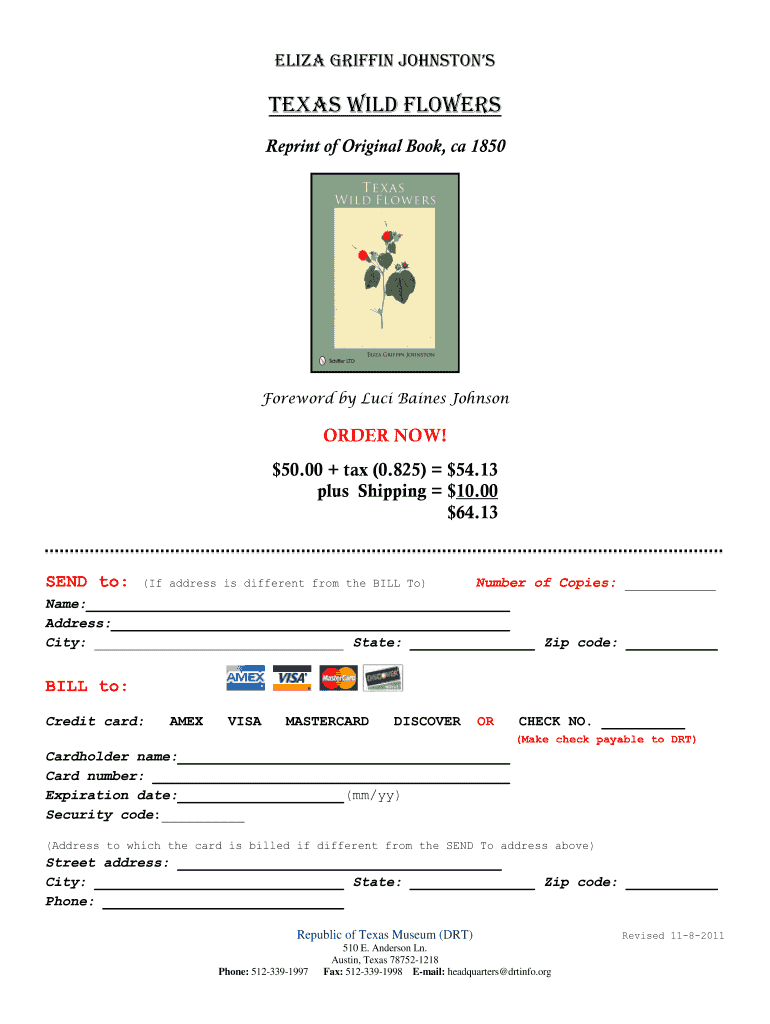 Get the free Texas Wildflowers Book Order Form - The Daughters of the Republic ... - drtinfo