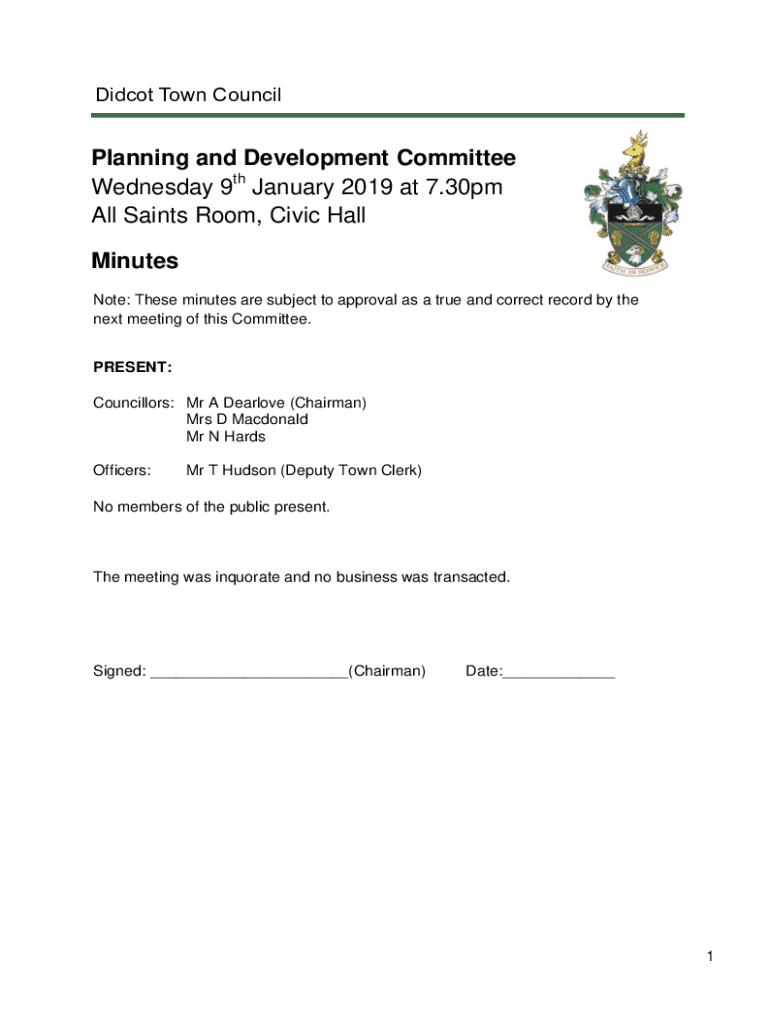 Did cot Town CouncilPlanning and Development Committee Wednesday 9th January 2019 at 7.30pm All Saints Room, Civic Hall Minutes Note: These minutes are subject to approval as a true and correct record
