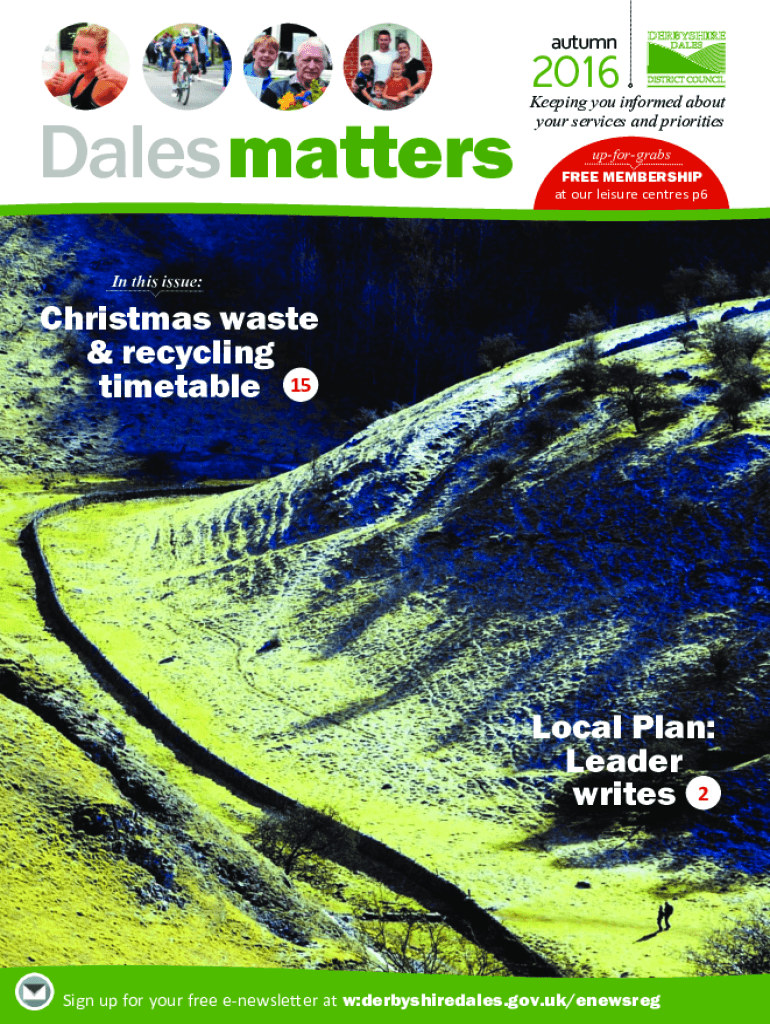 Autumn2016Dales mattersKeeping you informed about your services and priorities upforgrabs FREE MEMBERSHIP at our leisure centers p6In this issue:Christmas waste & recycling timetable 15Local Plan: