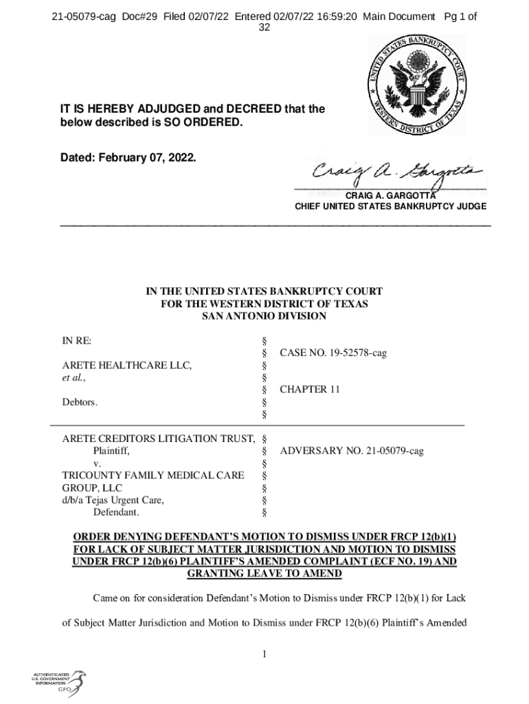 2105079cag Doc×29 Filed 02×07/22 Entered 02×07/22 16:59:20 Main Document Pg 1 of 32IT IS HEREBY ADJUDGED and DECREED that the below described is SO ORDERED. Dated: February 07, 2022. ___ CRAIG