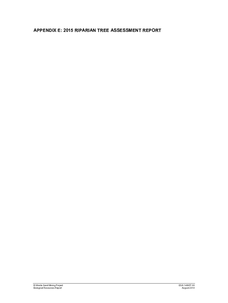 APPENDIX E: 2015 RIPARIAN TREE ASSESSMENT Reported Monte Sand Mining Project Biological Resources Report ESA 140957.00 August 2018October 16, 2015 County of San Diego Department of Planning and Development