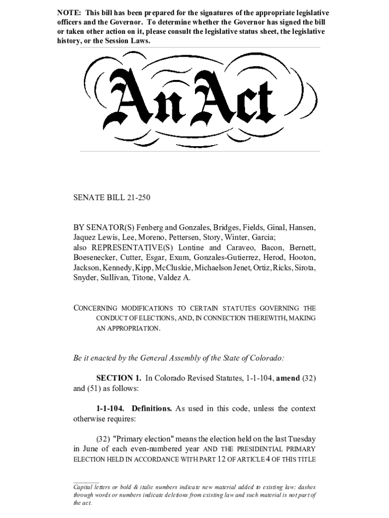 Fill out your senate bill 21-250 by online with pdfFiller!