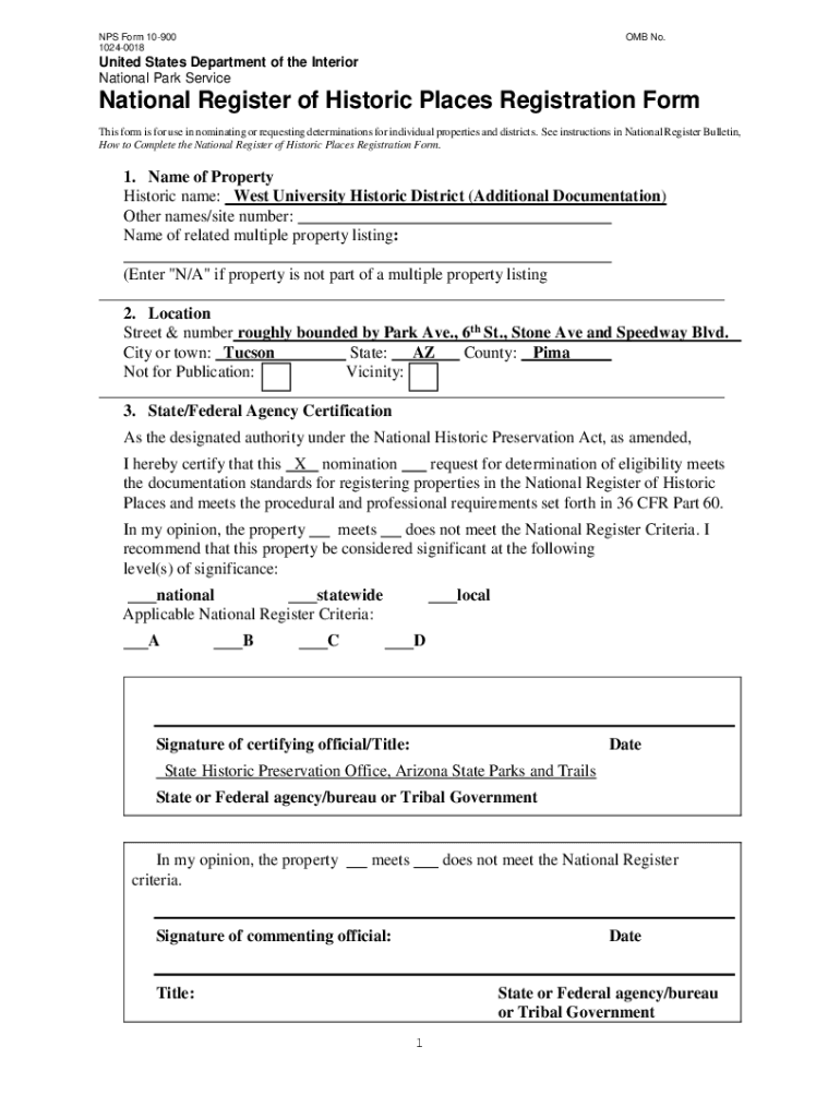 Get the free NPS Form 10-900 OMB No. 1024-0018 United ... - tucsonaz.gov