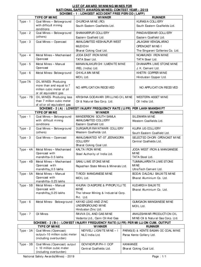 Type 1 Type 2 Type 3Type 4 Type 5 Type 6 Type7AType 7BType 1 Type 2 Type 3 Type 4A Type 4B Type 5A Type 5BType 6 Type 7Type 3AType 3BLIST OF AWARD WINNING MINES FOR NATIONAL SAFETY AWARDS×MINES)