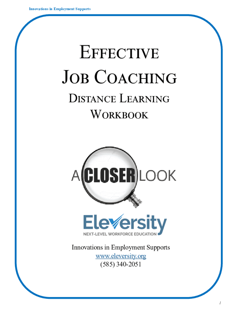 Innovations in Employment SupportsEffective Job Coaching Distance Learning WorkbookInnovations in Employment Supports www.eleversity.org (585) 34020511Innovations in Employment Supports Job×Site