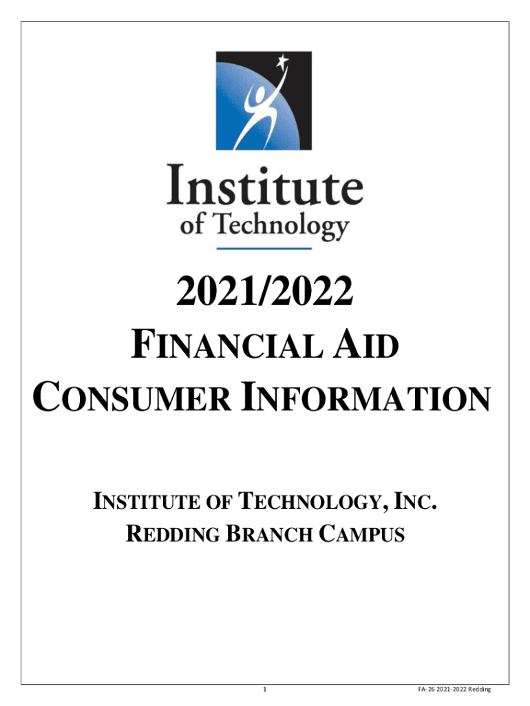 2021×2022 FINANCIAL AID CONSUMER INFORMATION INSTITUTE OF TECHNOLOGY, INC. REDDING BRANCH CAMPUS1FA26 20212022 ReddingFINANCIAL AID CONSUMER INFORMATION Financial Aid Information It is a goal of