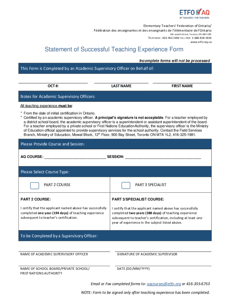 Get the free Online Elementary Teachers Federation of Ontario ...