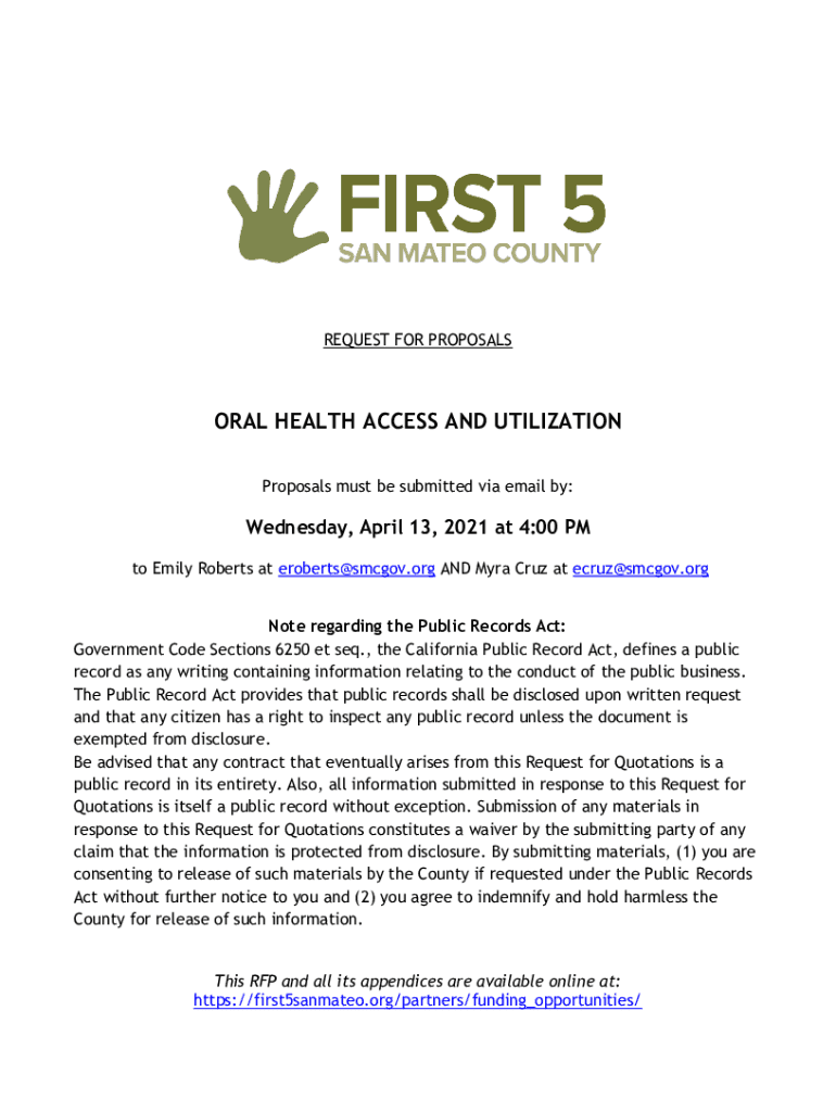 Get the free ORAL HEALTH ACCESS AND UTILIZATION - First 5 San Mateo