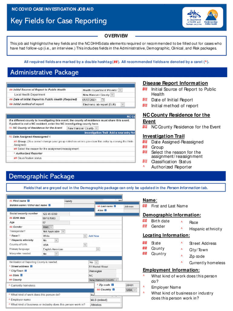 Get the free NC COVID CASE INVESTIGATION JOB AID Key Fields for Case ...