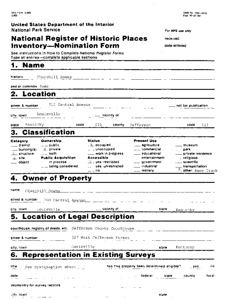 NPS Form 109000 MB No. 1024OO18 Exp. 1O3184United States Department of the Interior National Park ServiceNow NPS use National Register of Historic Places Inventory Nomination Form date entered instructions