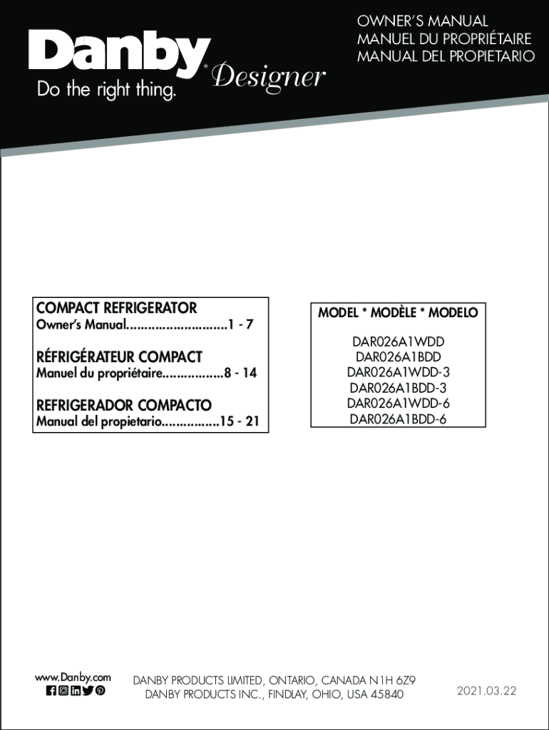 *COMPACT REFRIGERATOR Owners Manual............................1 7RFRIGRATEUR COMPACT Manuel Du proprietary.................8 14REFRIGERADOR COMPACT Manual Del proprietary................15 21www.