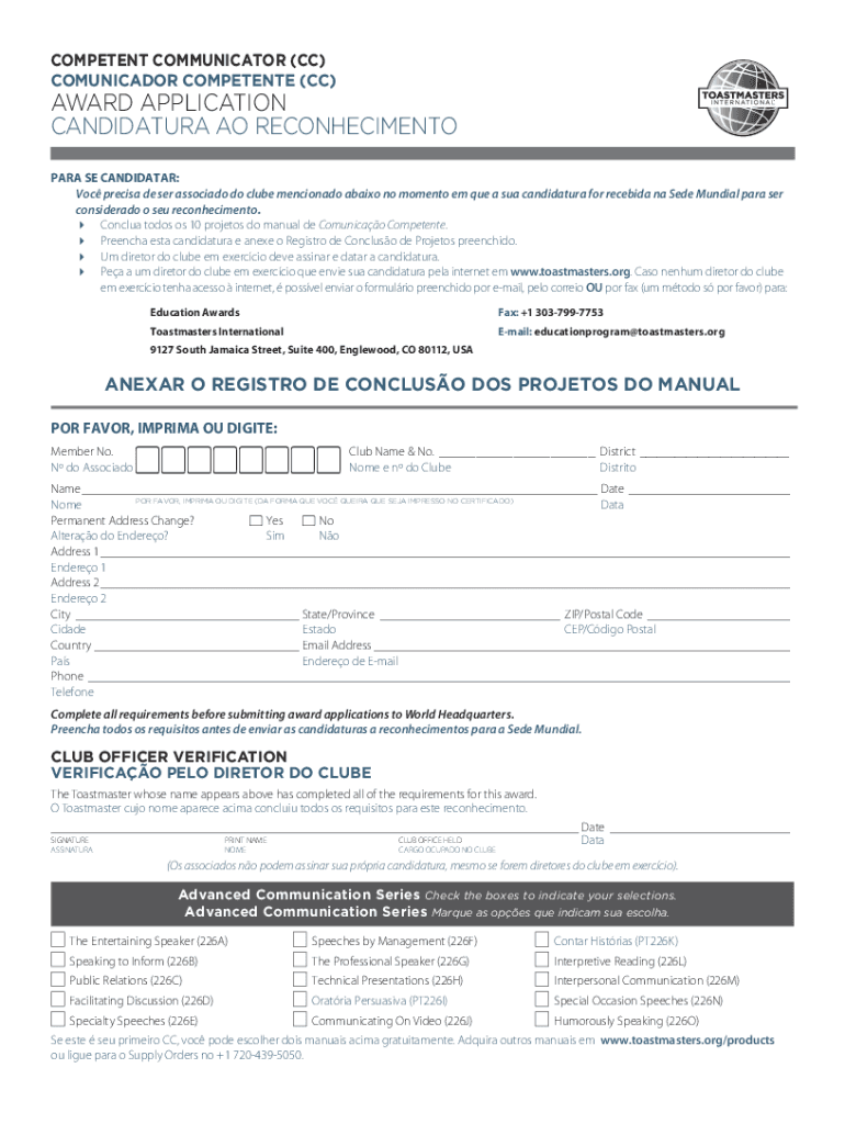 COMPETENT COMMUNICATOR (CC) COMMUNICATOR COMPETENCE (CC×AWARD APPLICATION CANDIDATURE AO RECONHECIMENTO PARA SE CANDIDATE: VOC precise DE SER associate do club mentioned again no moment em Que a