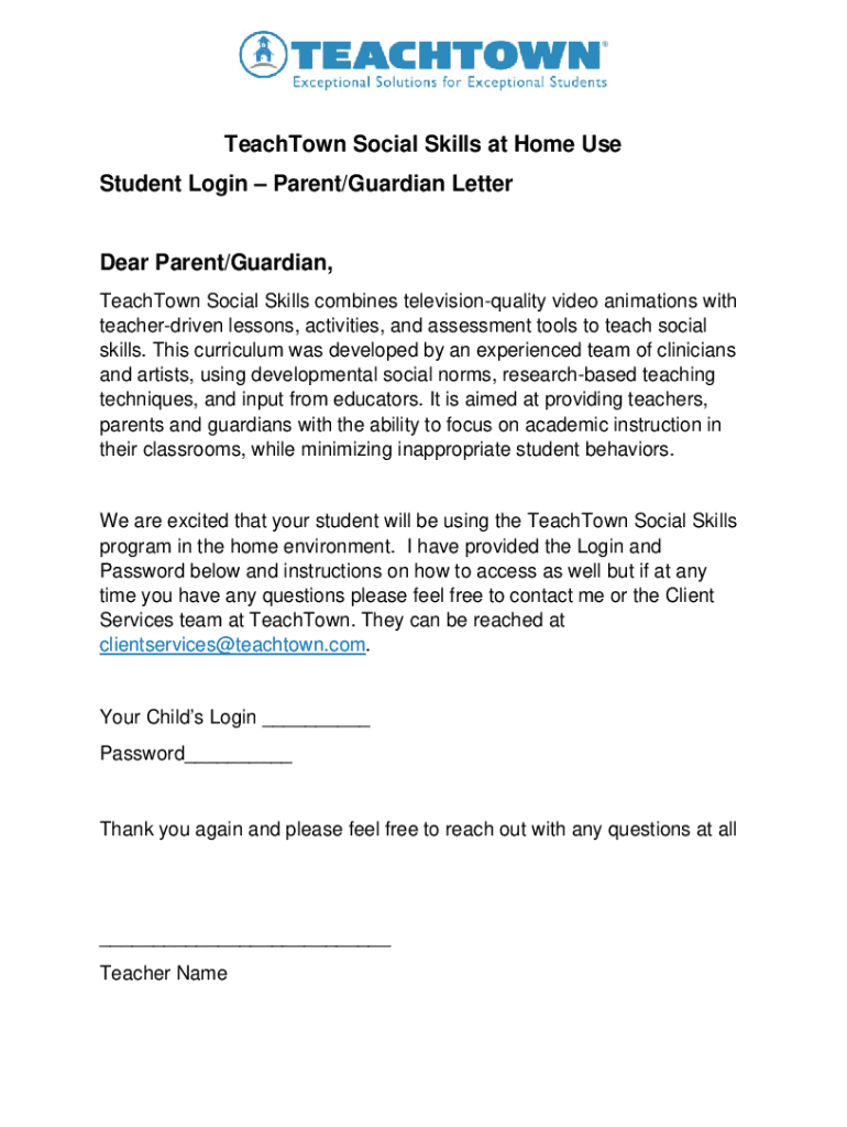 Get the free Social Skills Home Use - Teacher LetterParent Instructions