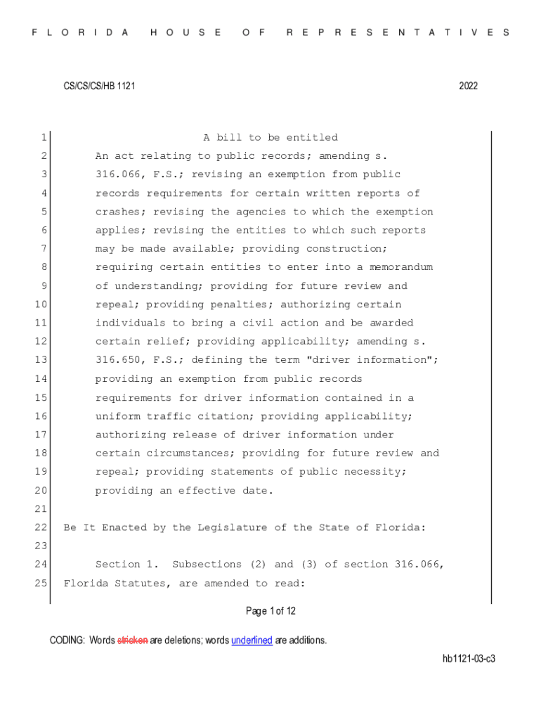 FLORIDAHOUSEOFREPRESENTATCS×CS/CS×HE 11211IVE2022A bill to be entitled2An act relating to public records; amending s.3316.066, F.S.; revising an exemption from public4records requirements for certain