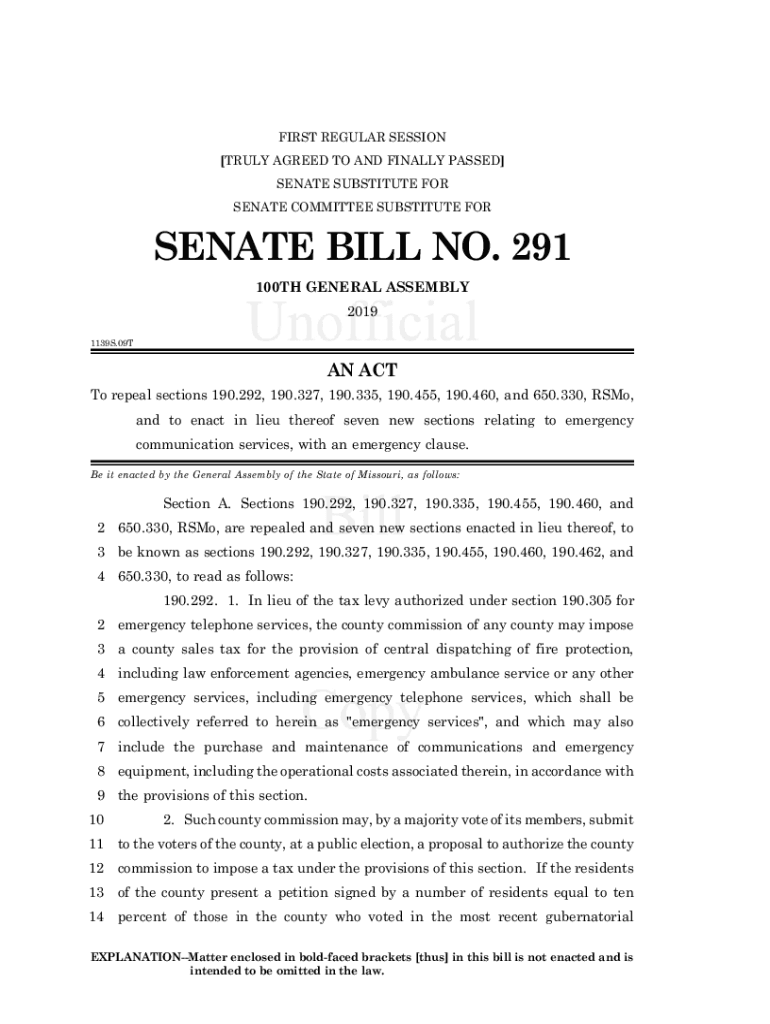 FIRST REGULAR SESSION [TRULY AGREED TO AND FINALLY PASSED] SENATE SUBSTITUTE FOR SENATE COMMITTEE SUBSTITUTE FORTUNATE BILL NO. 291 100TH GENERAL ASSEMBLY 2019 1139S.09TAN ACT To repeal sections 190.292,