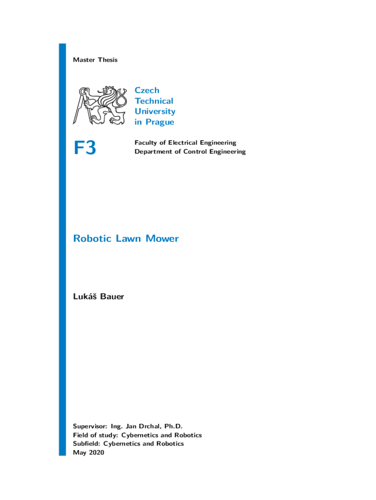 Master Thesis Czech Technical University in PragueF3Faculty of Electrical Engineering Department of Control EngineeringRobotic Lawn Powerful BauerSupervisor: ING. Jan Ducal, Ph.D. Field of study: