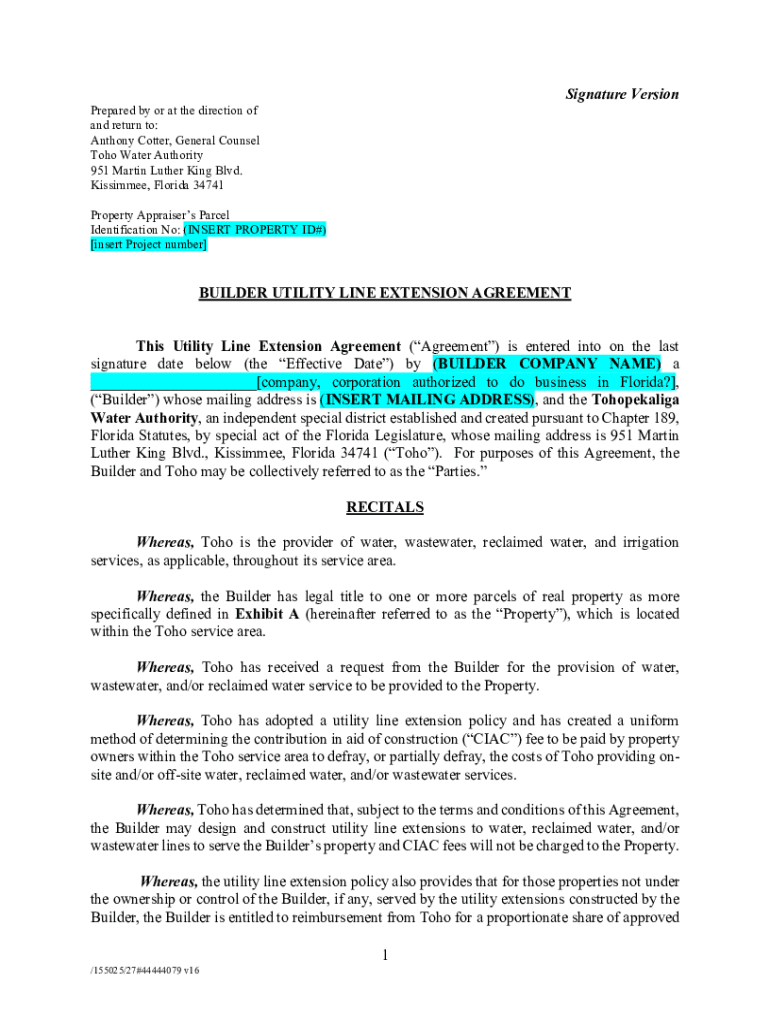 Get the free Builder Utility Line Extension Agreement Signature Version 11-9-2144444079v16.DOCX
