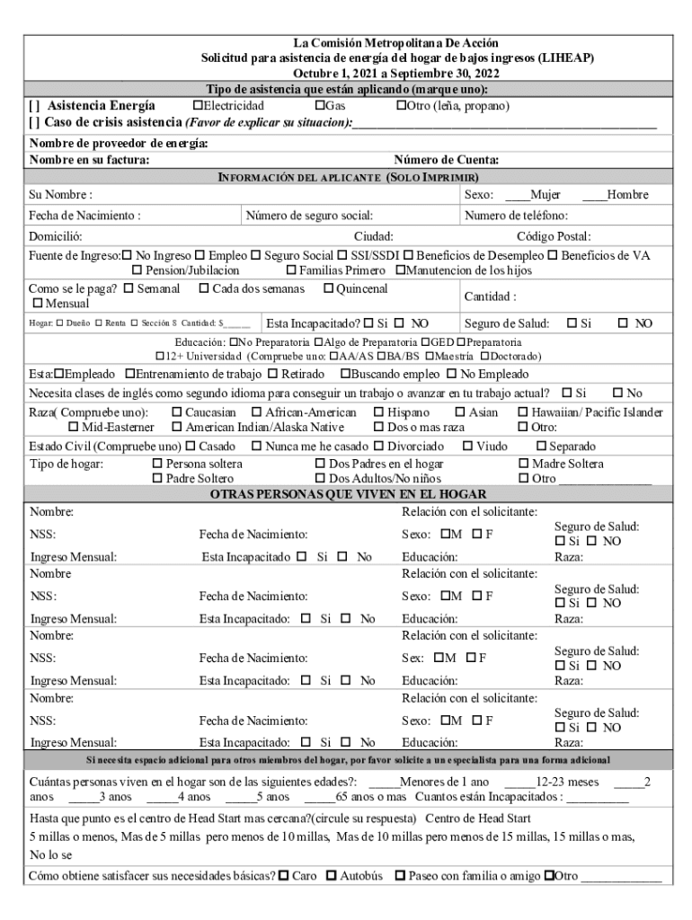 La Cousin Metropolitan De Accin Solicited para asistencia de energy Del Hagar de banjos ingress (LIH EAP) October 1, 2021, a September 30, 2022, Tip ode asistencia Que ESPN applicants (marque UNO):