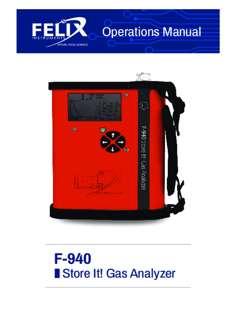 Operations ManualF940Store It! Gas Analyzable of Contents Table of Contents......................................................................... 1 Introduction .................................................................................