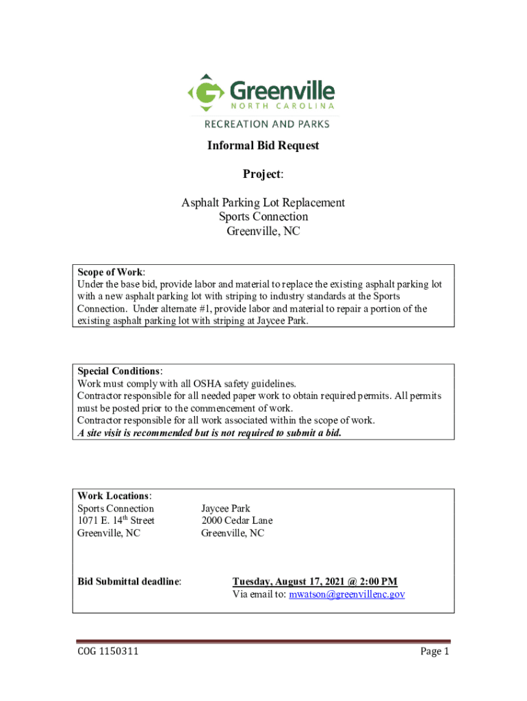 Get the free Informal Bid Request Project: Asphalt Parking Lot Replacement ...