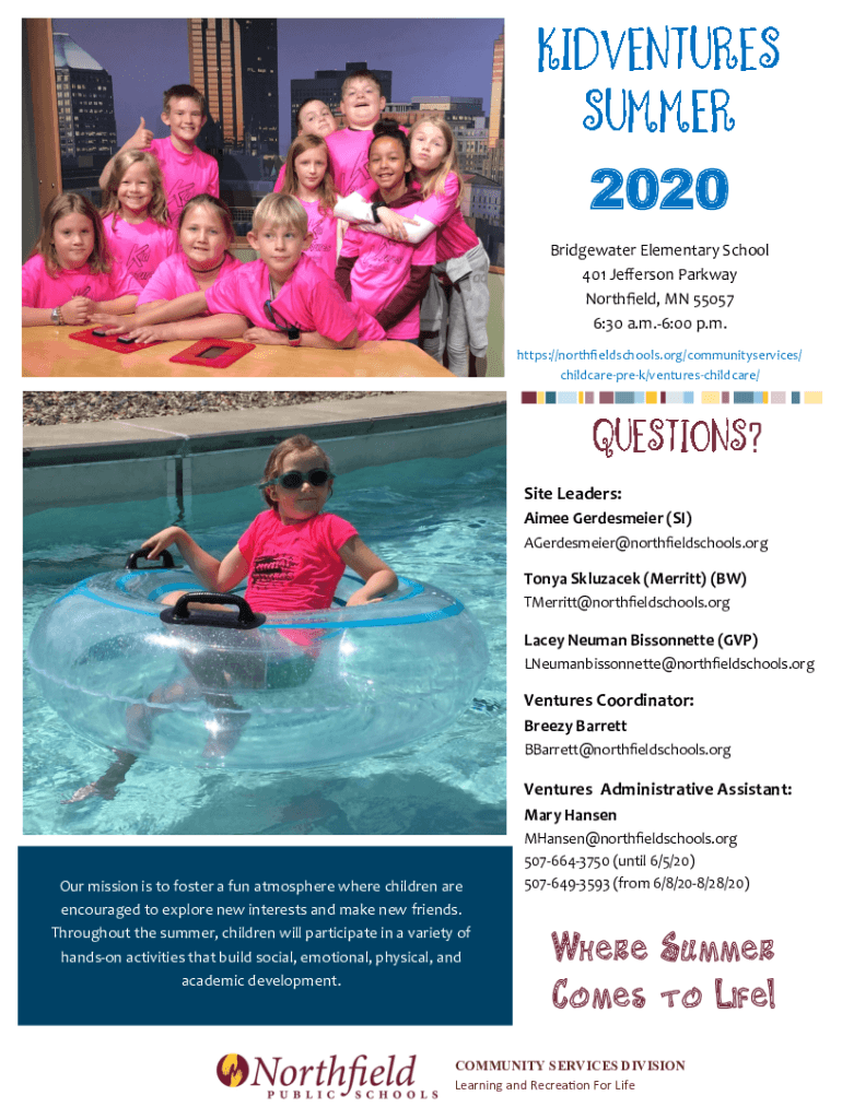 Get the free northfieldschools.orgwp-contentuploadsKidVentures Summer (Pandemic Edition) - Northf...