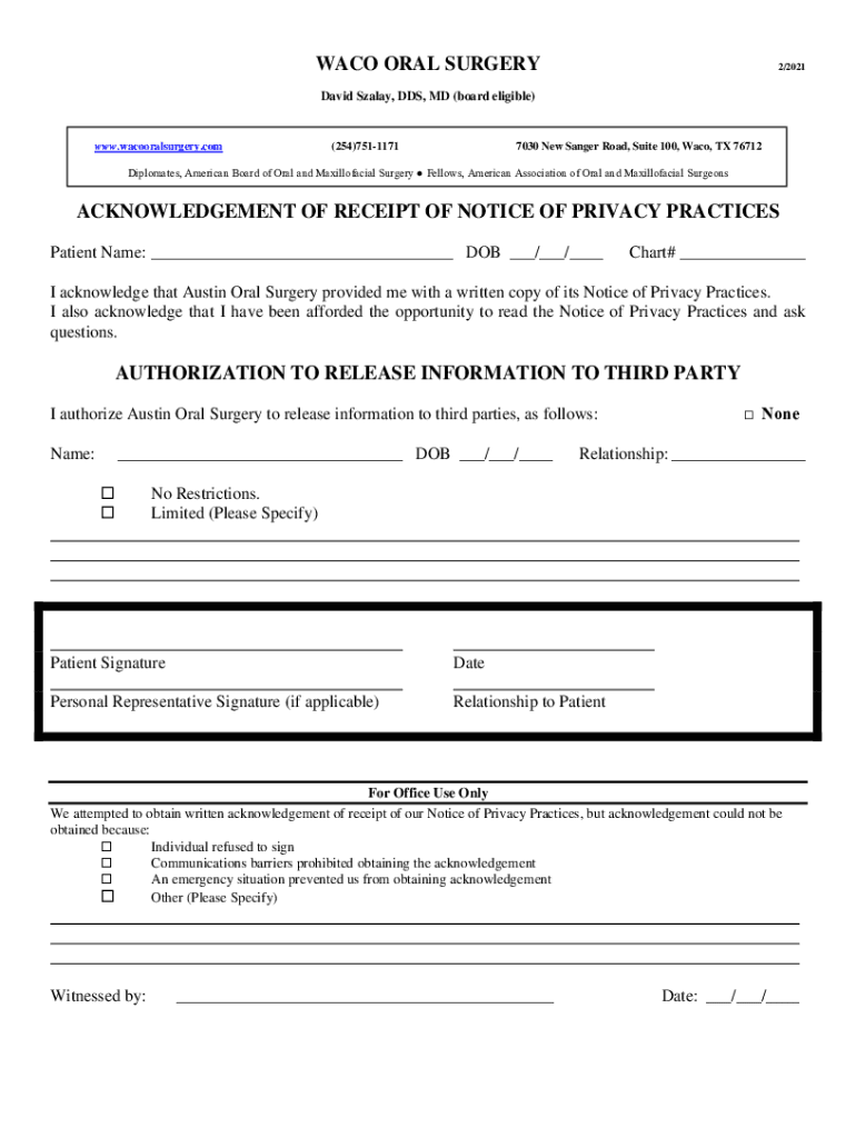 WACO ORAL SURGERY2×2021David Salary, DDS, MD (board eligible×www.wacooralsurgery.com×254)75111717030 New Sanger Road, Suite 100, Waco, TX 76712Diplomates, American Board of Oral and Maxillofacial