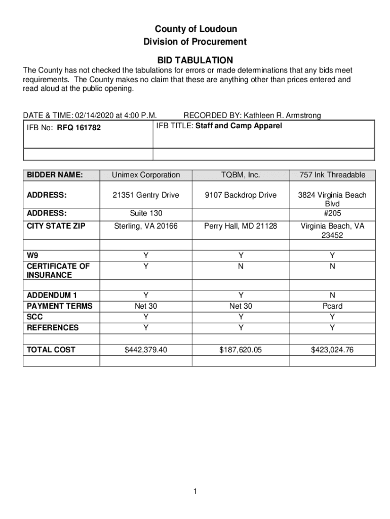 Get the free www.loudoun.govView126679County of Loudoun Division of Procurement BID TABULATION