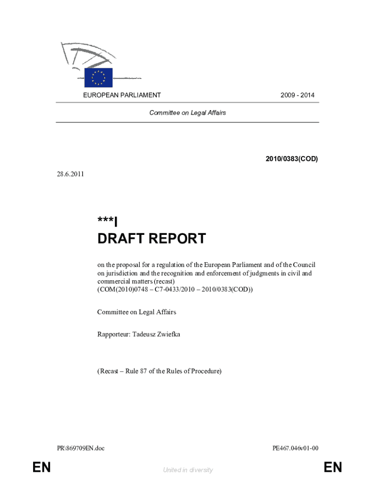 2009 2014EUROPEAN PARLIAMENT Committee on Legal Affairs2010×0383(COD) 28.6.2011***I DRAFT REPORT on the proposal for a regulation of the European Parliament and of the Council on jurisdiction and