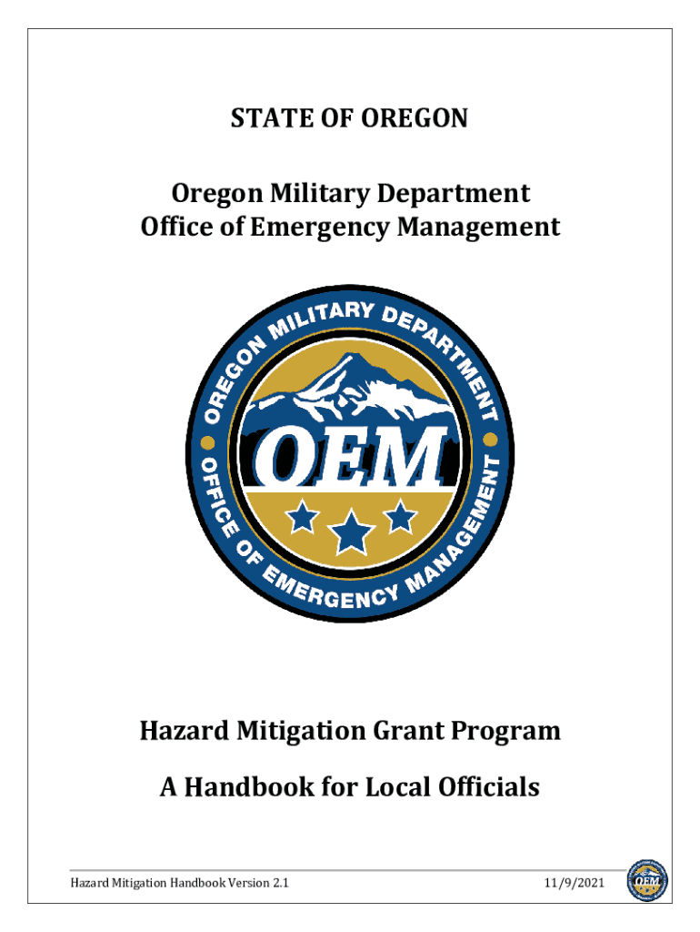STATE OF OREGON Military Department Office of Emergency ManagementHazard Mitigation Grant Program A Handbook for Local Officials Hazard Mitigation Handbook Version 2.111×9/2021STATE OF OREGON Hazard