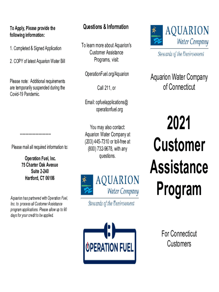 To Apply, Please provide the following information: 1. Completed & Signed Application 2. COPY of the latest Aquarian Water BillQuestions & Information To learn more about Aquarian\'s Customer Assistance